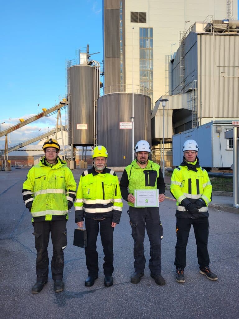 Kotkan Energia huomioi vuosittain seisokkien turvallisuusasioissa esimerkillisesti suoriutuneen urakoitsijan. Voimalaitoksen työnjohto on valinnut Hovinsaaren vuosihuollon 2024 turvallisimmaksi kumppaniksi Karhulan Levytyö Oy:n, onnea! Perusteena valinnalle oli urakoitsijan työntekijöiden turvallinen suoriutuminen vastaanoton kuljettimen täyshuollosta. Karhulan Levytyön työntekijät palkittiin Kotkan Energian radioilla ja latauskaapeleilla.