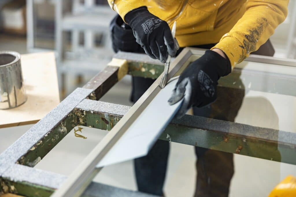 Yksi ikkuna kulkee monen käsiparin kautta. Jokainen kootaan, kitataan, maalataan käsin. Työ tehdään millimetrin tarkkuudella. Ensin valmistuu malli-ikkuna, jonka asentamisen jälkeen järjestetään katselmus. Tuotetta säädetään yhdistämällä toiveet ja käytännön mahdollisuudet. – Arkkitehtien silmät ovat uskomattoman tarkat. He pystyvät näkemään pienetkin eroavaisuudet metrien