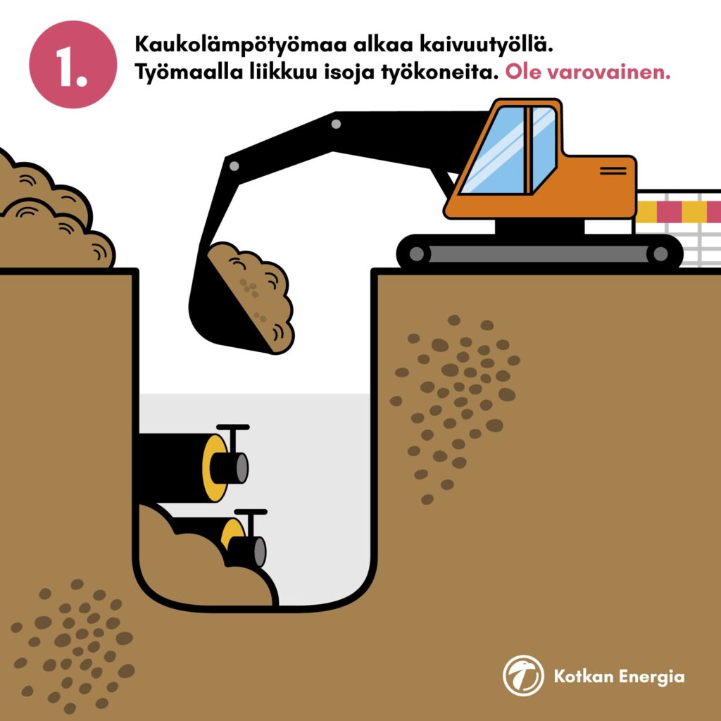 Kaukolämpötyömaan vaiheet