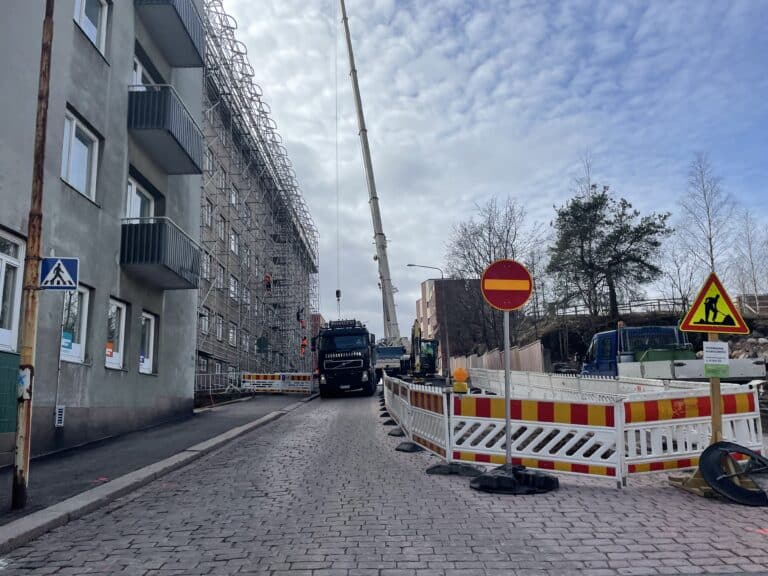 Kaukolämpötyömaa Vuorikadulla ja Laivurinkadulla Kotkansaarella