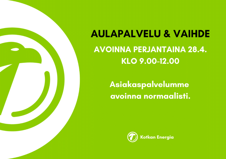 Aulapalvelumme sekä puhelinvaihteemme sulkeutuu poikkeuksellisesti klo 12.00 perjantaina 28.4.2023. Asiakaspalvelumme on avoinna normaalisti.